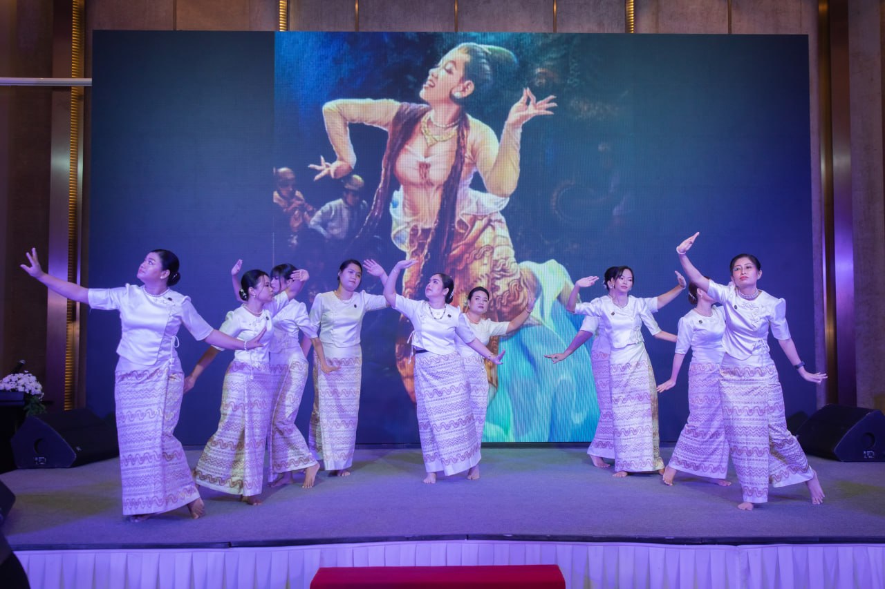 The afternoon featured a celebratory luncheon accompanied by traditional dance performances, including the “Day Woot Saya” dance (Music: Gita Sarso Ko Thet Oo; Vocal: San Yay Moe) and the “Let Pan Pwint Kauk” dance (Music: Bo Kalay Tint Aung; Vocal: Pan Hsu Pyae Kyaw).