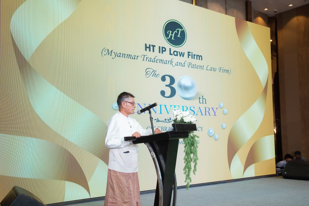 The ceremony was officially opened by U Thein Aung, Co-Founder & Senior Partner of HT IP Law Firm, who delivered the welcoming remarks. He reflected on the firm’s journey since 1995 and emphasized its commitment to protecting innovation in Myanmar.